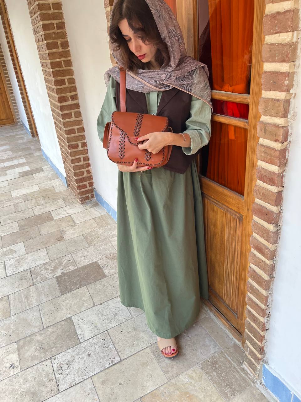 جزییات : چرم گاوی چرم طبیعی با تریشه دوخت شده و کاملا دستدوز