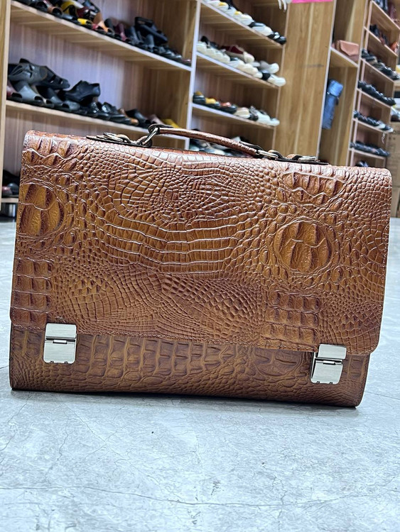 کیف اداری رمزدار چرم گاوی طرح روکو قهوهای | بند بلند | شیک و مقاوم