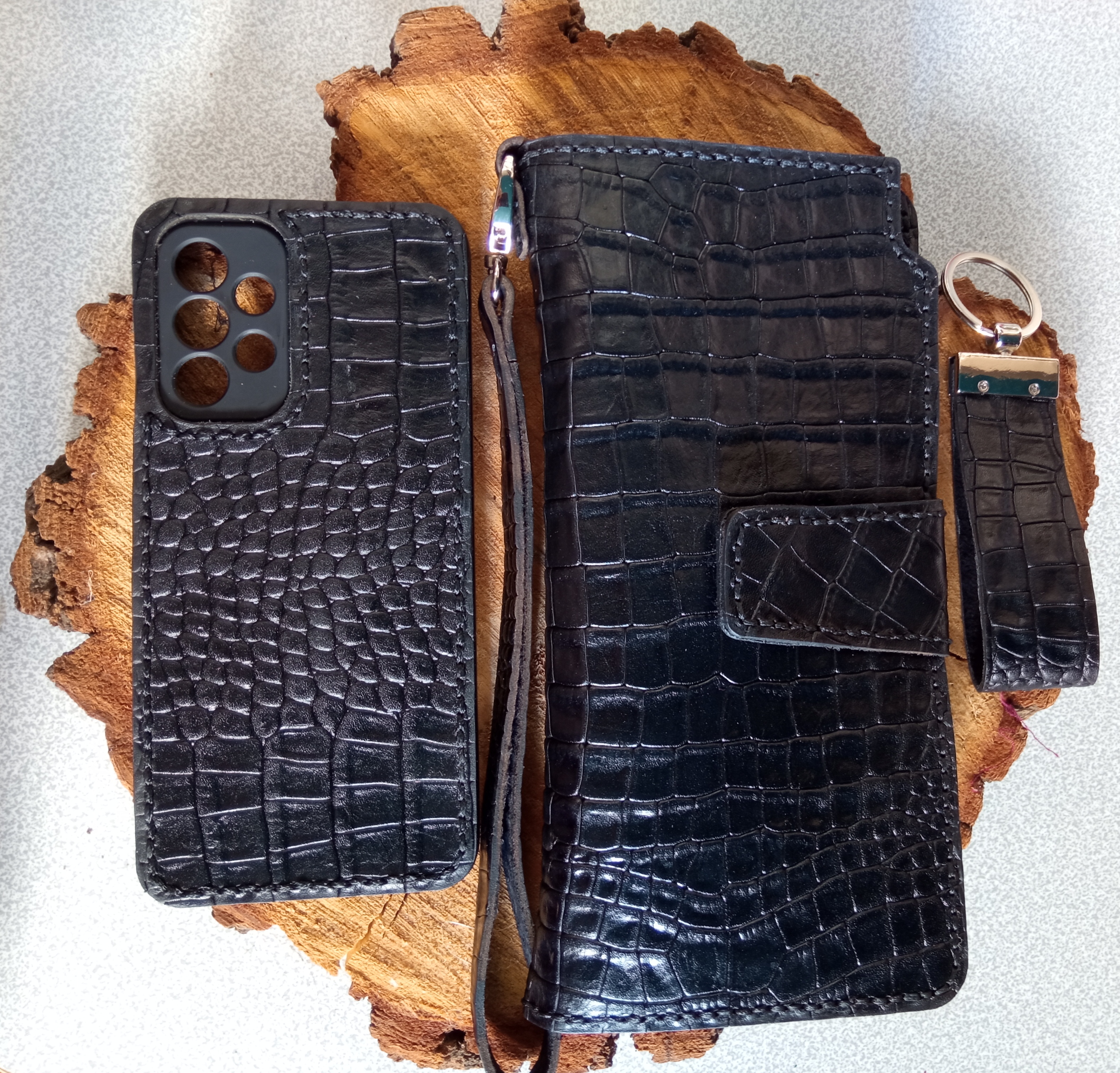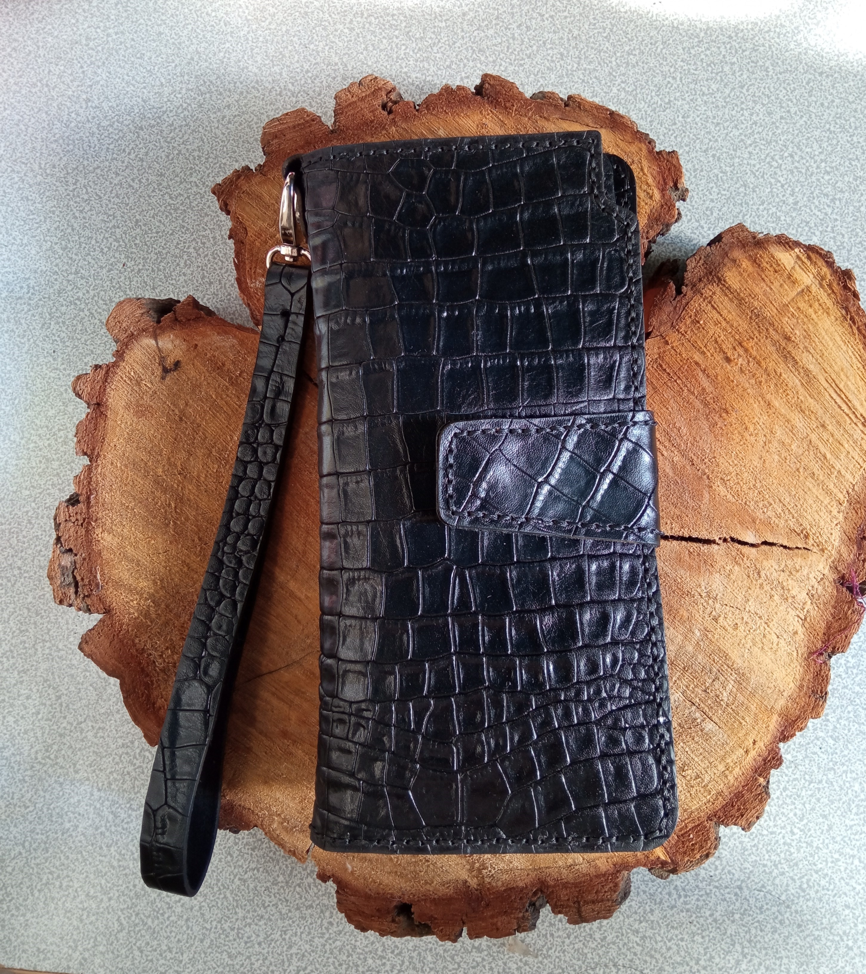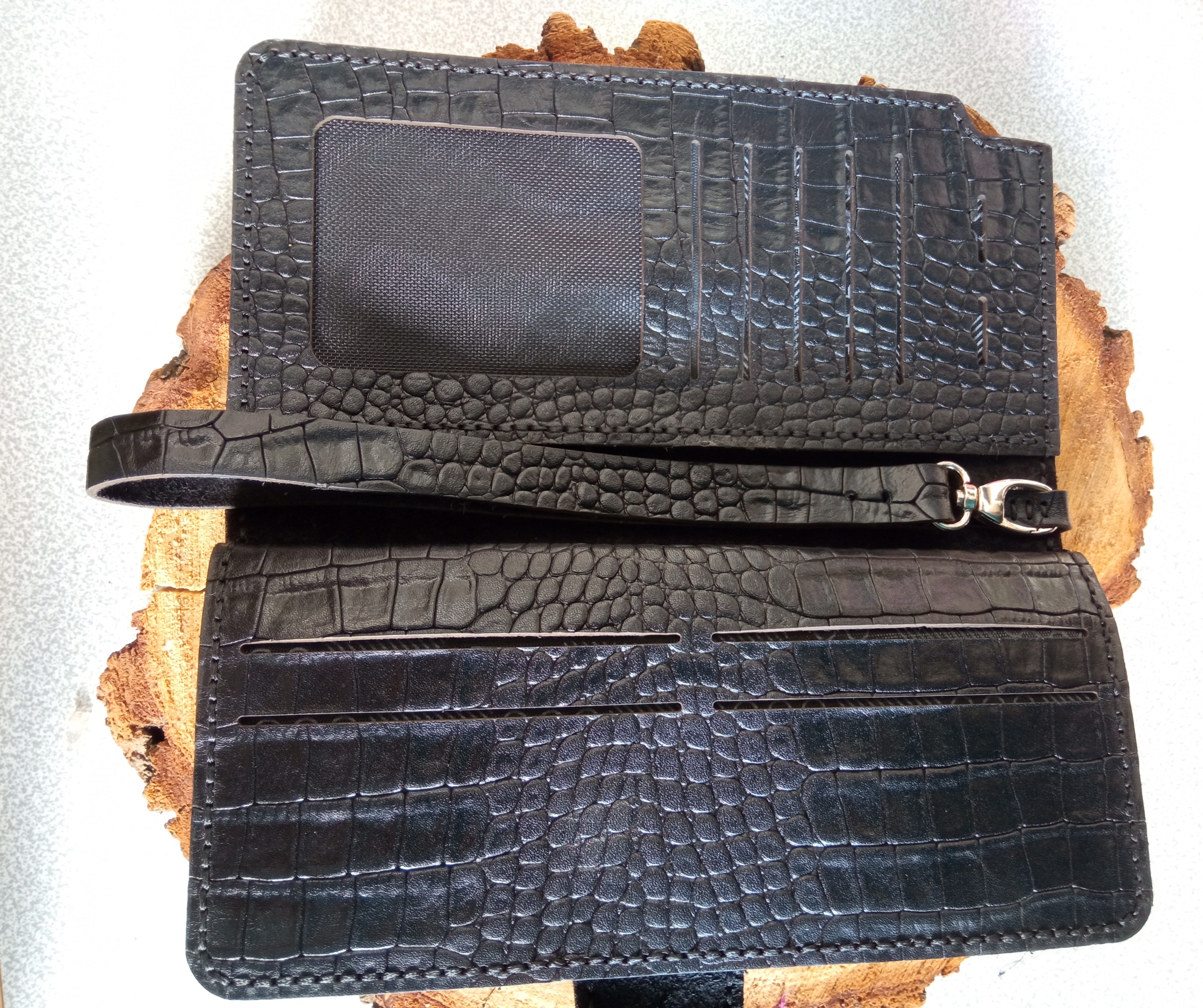 خرید کیف پول چرم طبیعی دستدوز طرح روکو | لت متحرک، جای کارت، اسکناس، عکس، بند دستی + ست قاب گوشی و جاکلیدی